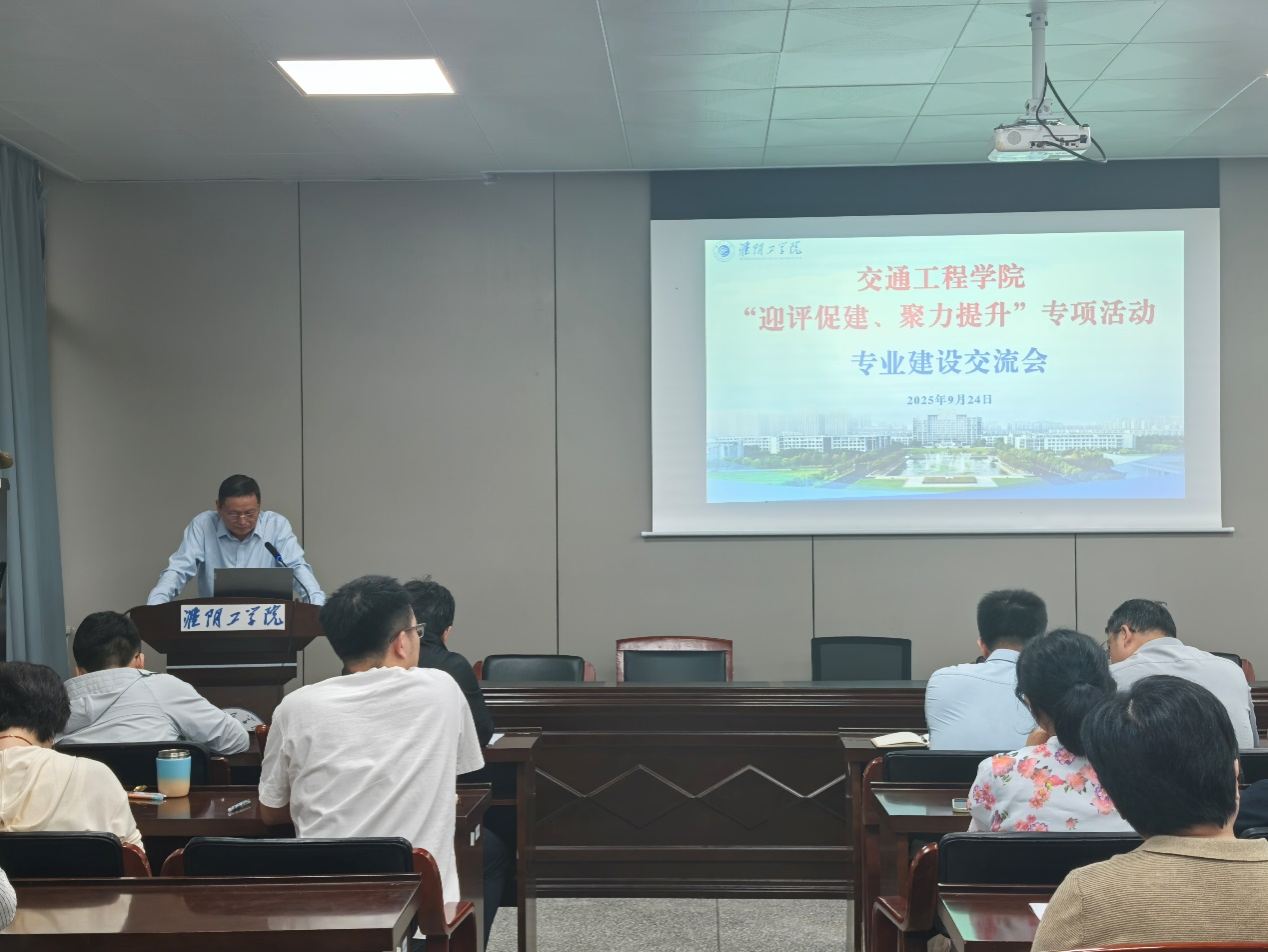 为深入贯彻落实学校关于开展“迎评促建、聚力提升”专项活动的部署要求,全面提升学院教育教学质量和育人实效,2025年9月24日下午,交通工程学院在学院会议室组织召开“迎评促建、聚力提升”专项活动之专业建设交流会。会议由学院副院长周桂良主持,全体教师参会。