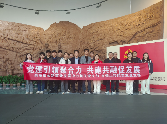 为进一步深入贯彻学习习近平新时代中国特色社会主义思想主题教育,全面贯彻党的二十大精神,为培养新时代交通运输卓越人才、服务区域经济社会高质量发展提供坚强组织保障,省样板党支部交通工程学院第三党支部全体教师党员与泰州市公路事业发展中心党支部开展“立足交通行业,发挥苏超精神,弘扬东进精神,传承红色基因”主题党日活动。
