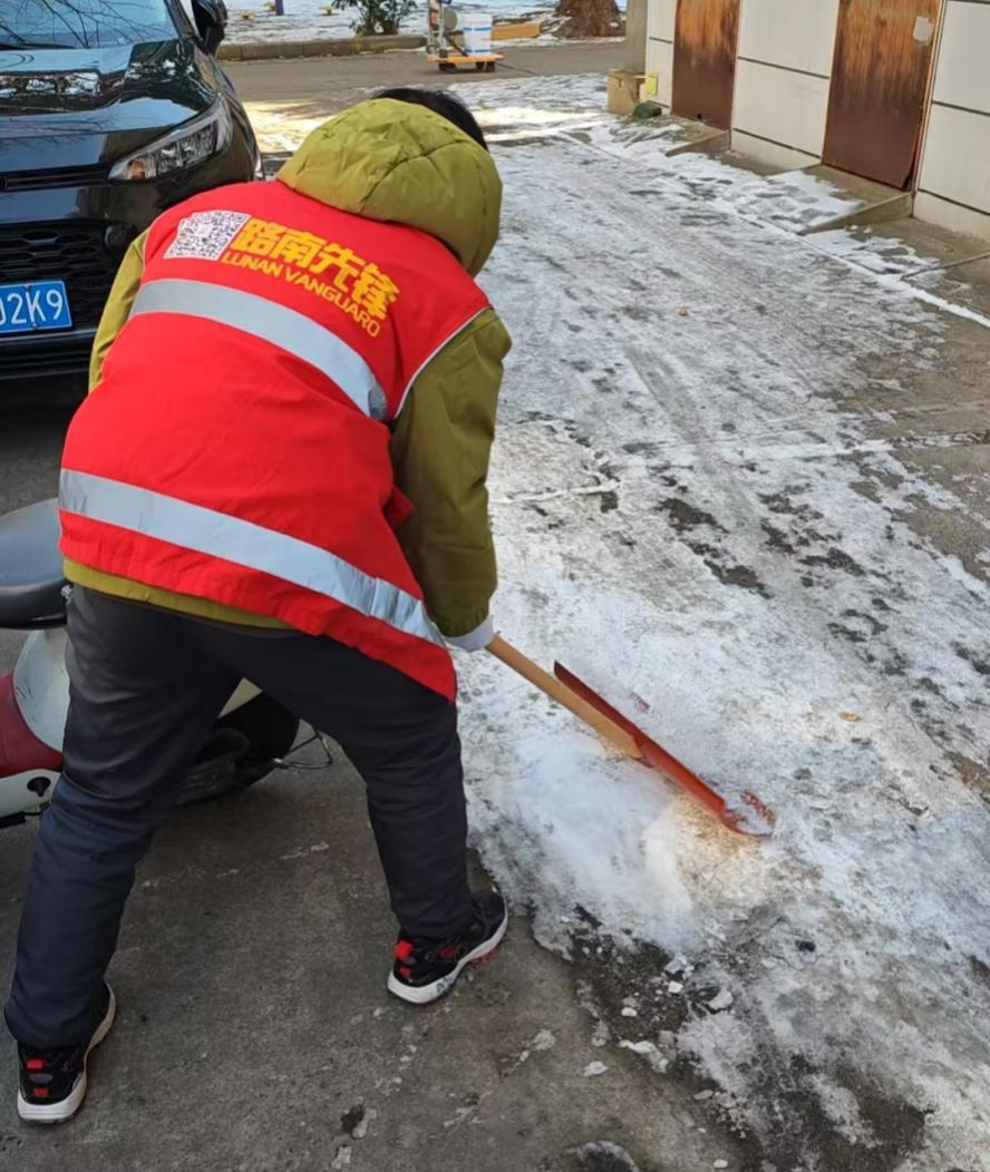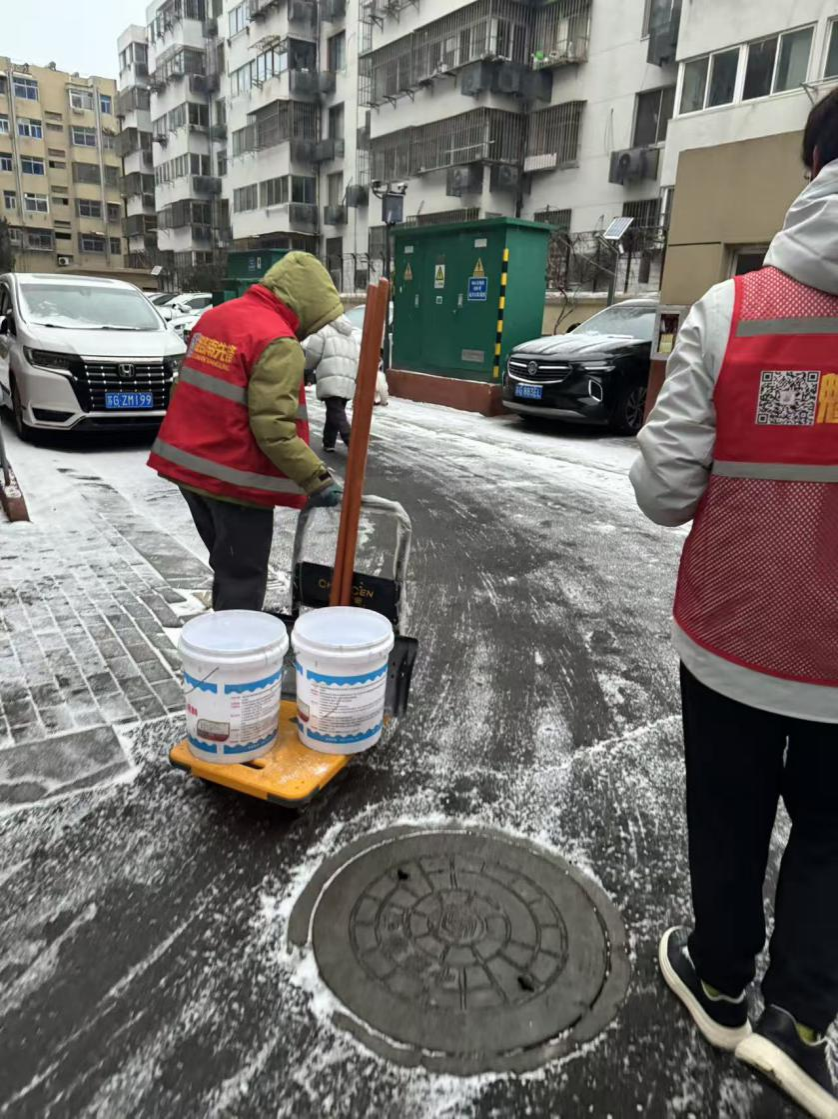 雪情就是命令,保障就是责任。为防止道路结冰,沈靖淞与社区工作人员紧密配合,聚焦小区主干道、单元门出入口、坡道及人行步道等关键区域,分工开展撒盐融冰和铲雪作业。面对已被碾压坚实的积雪与薄冰,他毫不退缩,手持雪铲奋力清理,不放过一处死角。凛冽寒风中,他忙碌的身影成为社区里一道温暖的风景线。