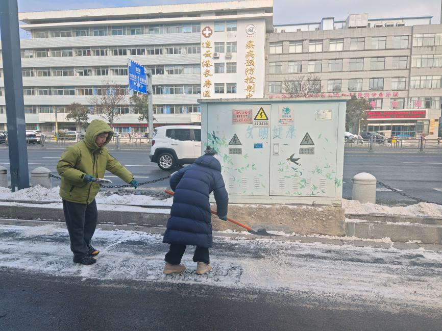 近日,受持续降雪天气影响,延东社区部分路段出现积雪结冰情况,给居民出行带来安全隐患。交通工程学院 “返家乡” 社会实践学生沈靖淞,积极响应社区应急保障号召,主动投身铲雪除冰一线,用实际行动践行青年担当。