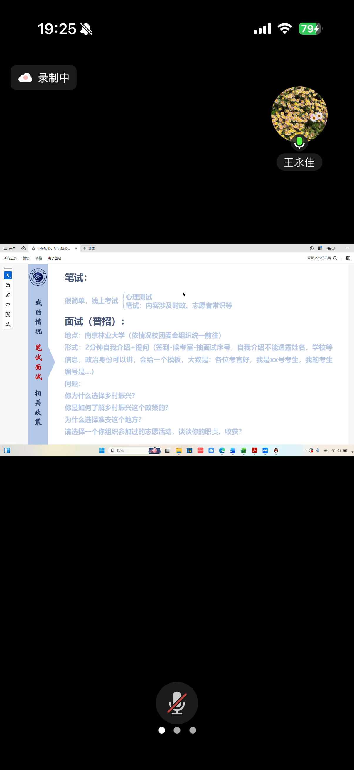 王永佳结合基层服务经历,分享工作日常与成长感悟,详细解读“江苏大学生志愿服务乡村振兴计划”政策,还梳理了报考笔面试要点。互动环节,她逐一解答同学们关于备考、面试等疑问。